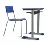 Conjunto para aluno tamanho 06 – Azul. Tampo em ABS ou Aglomerado. Altura do aluno: de 1,59m a 1,88m.