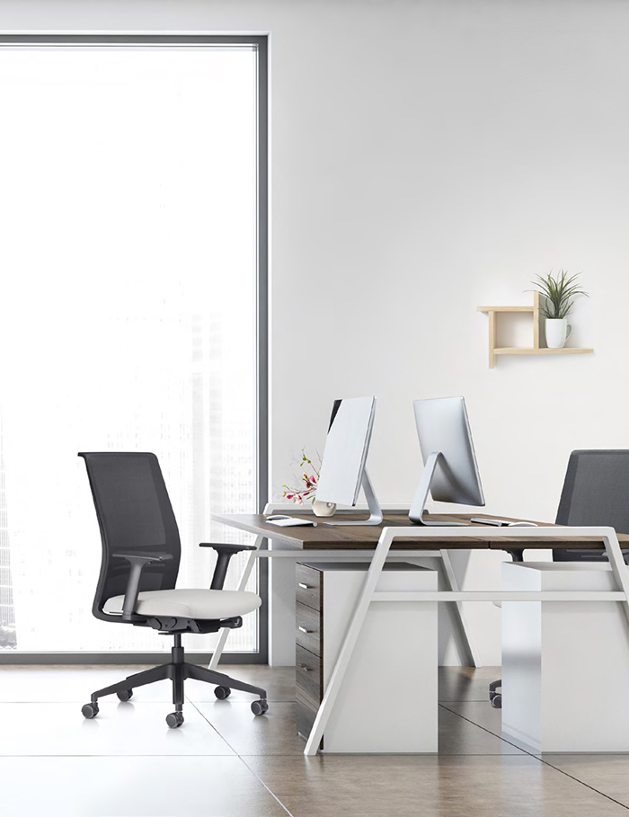 A linha Grand é a combinação perfeita entre minimalismo e sofisticação. Seu amplo encosto em tela com apoio lombar garante um nível de conforto que agrada até os usuários mais exigentes. A assertividade do design garante uma incomparável versatilidade de combinação nos mais diversos ambientes.